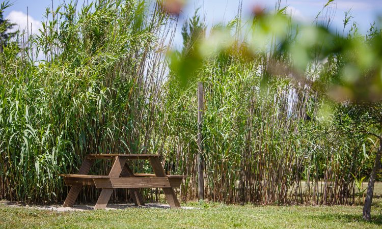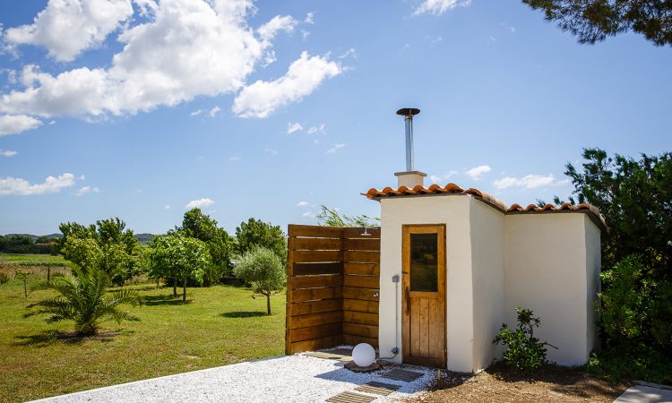 Verder is er een gezellig overdekt terras dat zicht heeft op het verwarmd zwembad (geopend van 03/05/25 tot 26/09/25) en de sauna. Rond het zwembad staan hardhouten ligbanken met kussens. Ook de petanquebaan en de ruime tuin staan ter beschikking; misschien komt u wel een van onze lieve schapen of geiten tegen!
